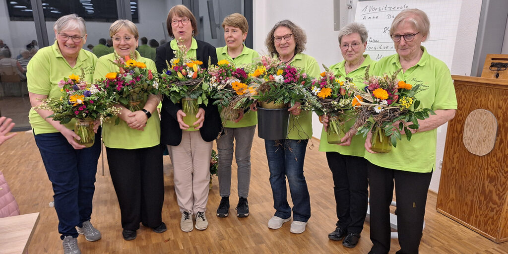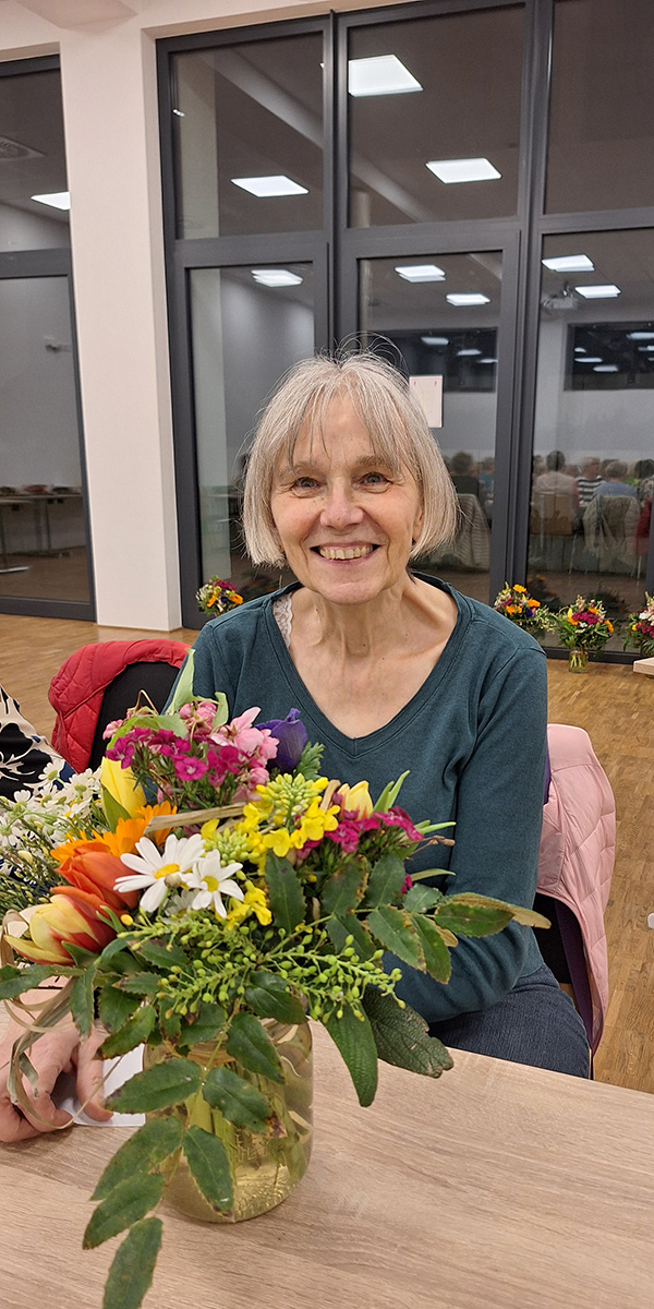 Alle Mitglieder, die sich an der Jahreshauptversammlung eingebracht haben, erhielten als Dank ein farbenfrohes, liebevoll von Inge Wiegand gebundenes Blumenarrangement, worüber sie sich sehr freuten.