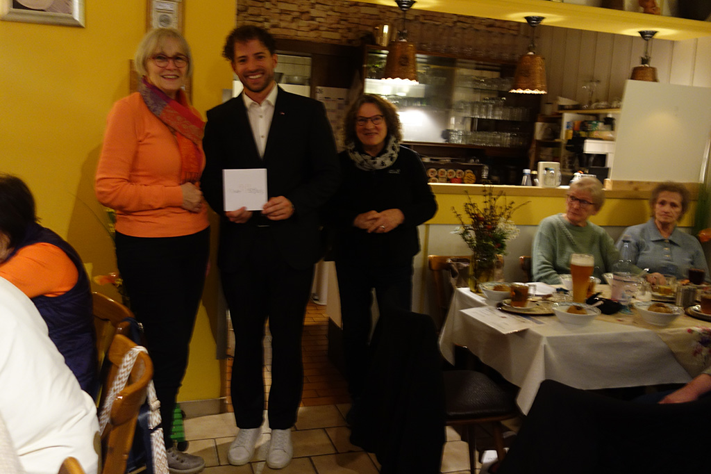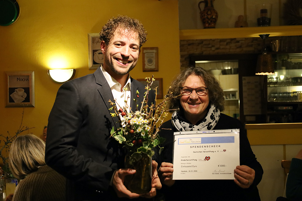 Ein besonderer Moment des Abends war die Begrüßung von Herrn Dominic Clos von der Kinderherzstiftung in der Deutschen Herzstiftung, er durfte an diesem Abend eine Spende in Höhe von 1.000  Euro entgegennehmen – ein erlös aus dem verkauf des Koch-und Backbuchs sowie aus den Spendeneinnahmen von „Omas Kalender 2025“. Zusätzlich überreichte die Kreativgruppe, vertreten durch Ute Mroczek, weitere 100 Euro, die beim Hasenfest 2025 durch den Verkauf von Osterdekoration, Kränzen und Gestecken eingenommen wurden.