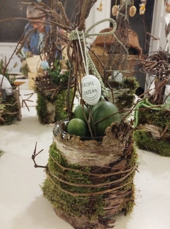 Beim Hasenfest werden wir auch wieder einen Bastel-/Deko Tisch für die Kinder anbieten. Sie können hier wieder ihre eigenen kleinen Gestecke herstellen und so der eigenen Phantasie freien Lauf lassen und gleichzeitig die Familientafel durch Deko bereichern.