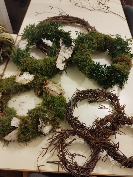 Seit Aschermittwoch haben wir schon Kränze aus verschiedenen Materialien gebunden und sehr dekorative Gläser gestaltet, die als Tischschmuck im Innenbereich und Deko im Außenbereich gedacht sind. Ab Mittwoch (4.3.26) starten wir mit der Dekoration der Kränze.