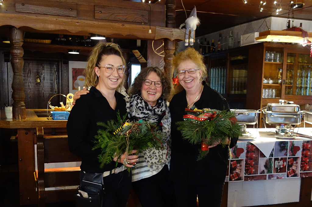 Die stellvertretenden Vorsitzenden Marita May und Gabi Bender bedankten sich mit einem Geschenk und wertschätzenden Worten bei Anne Dammel und allen, die dazu beigetragen haben, dass der Gedanke des Jahresabschlusses ins neue Jahr hinein trägt.
